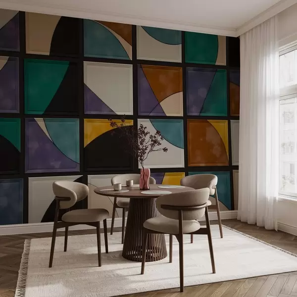 Fotomurales Cuadrados de mosaico de colores sobre fondo oscuro Nr. w02849