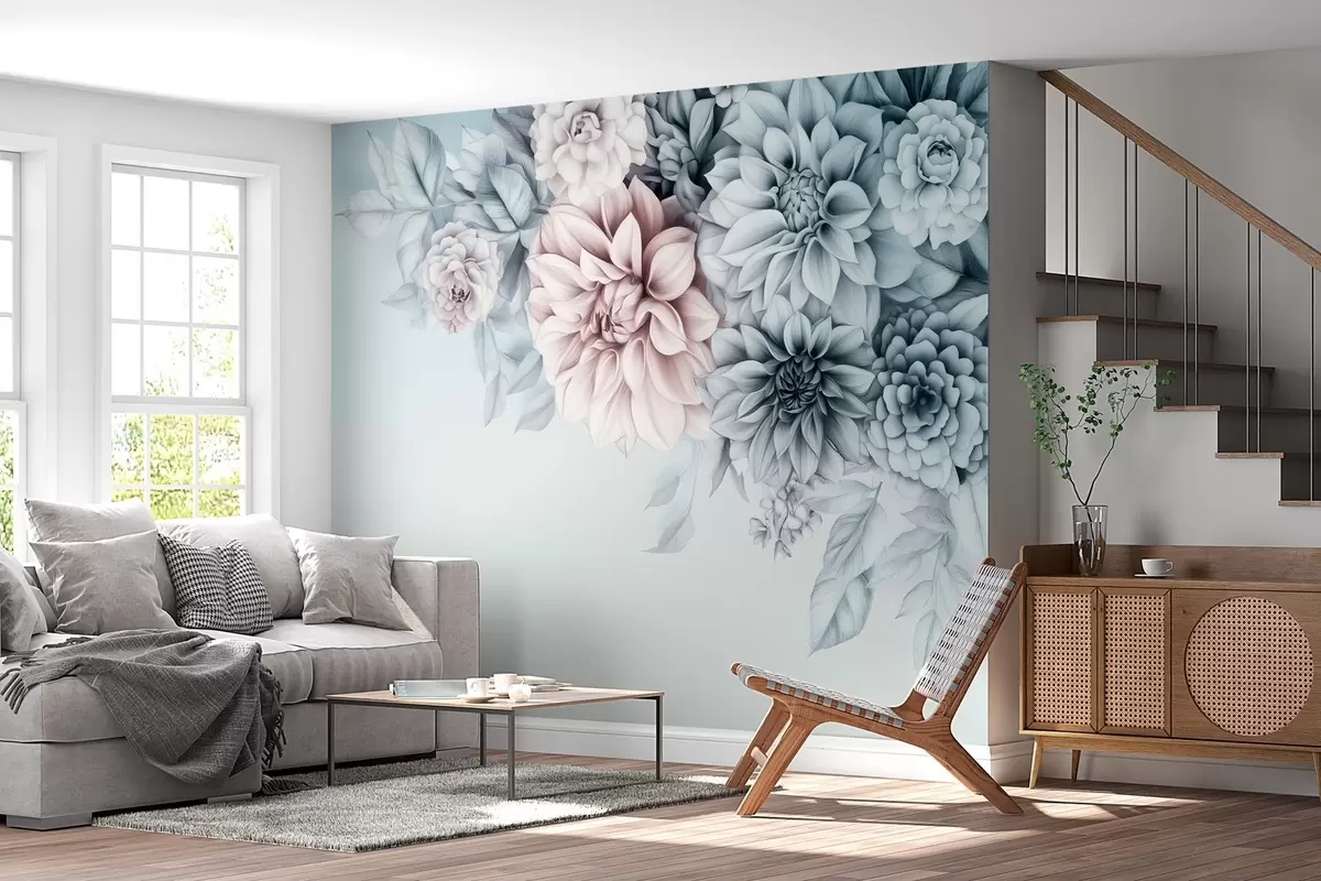 Fotomurales un ramo de crisantemos sobre fondo azul grisáceo Nr. w03118