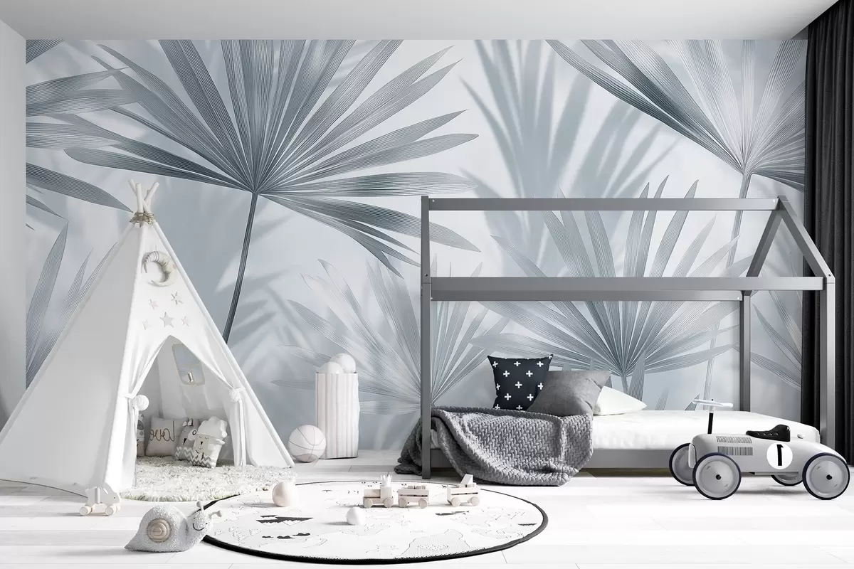 Fotomurales Hojas de palmera, motivo floral, minimalismo, tropical, colores grises Nr. w03152v1