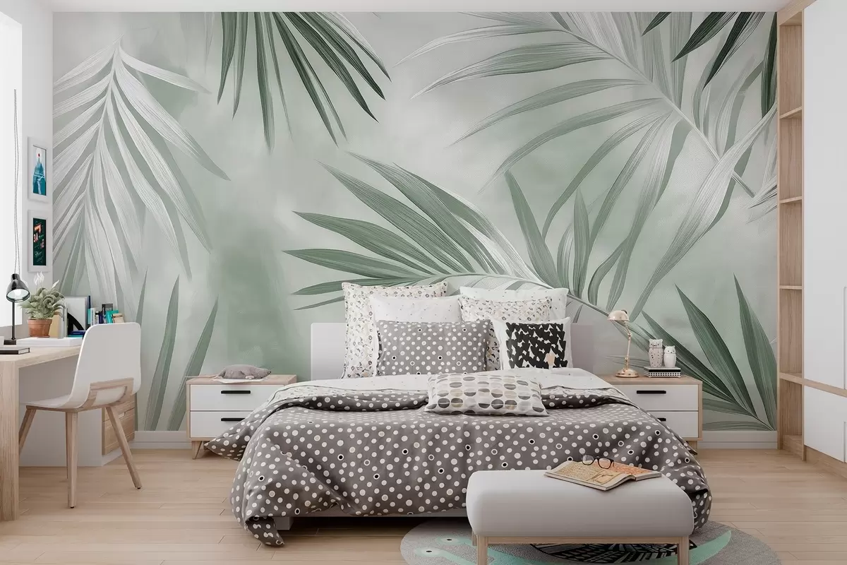 Fotomurales Abstracción de hojas tropicales, palmera, paleta de colores verdes Nr. w03153v2