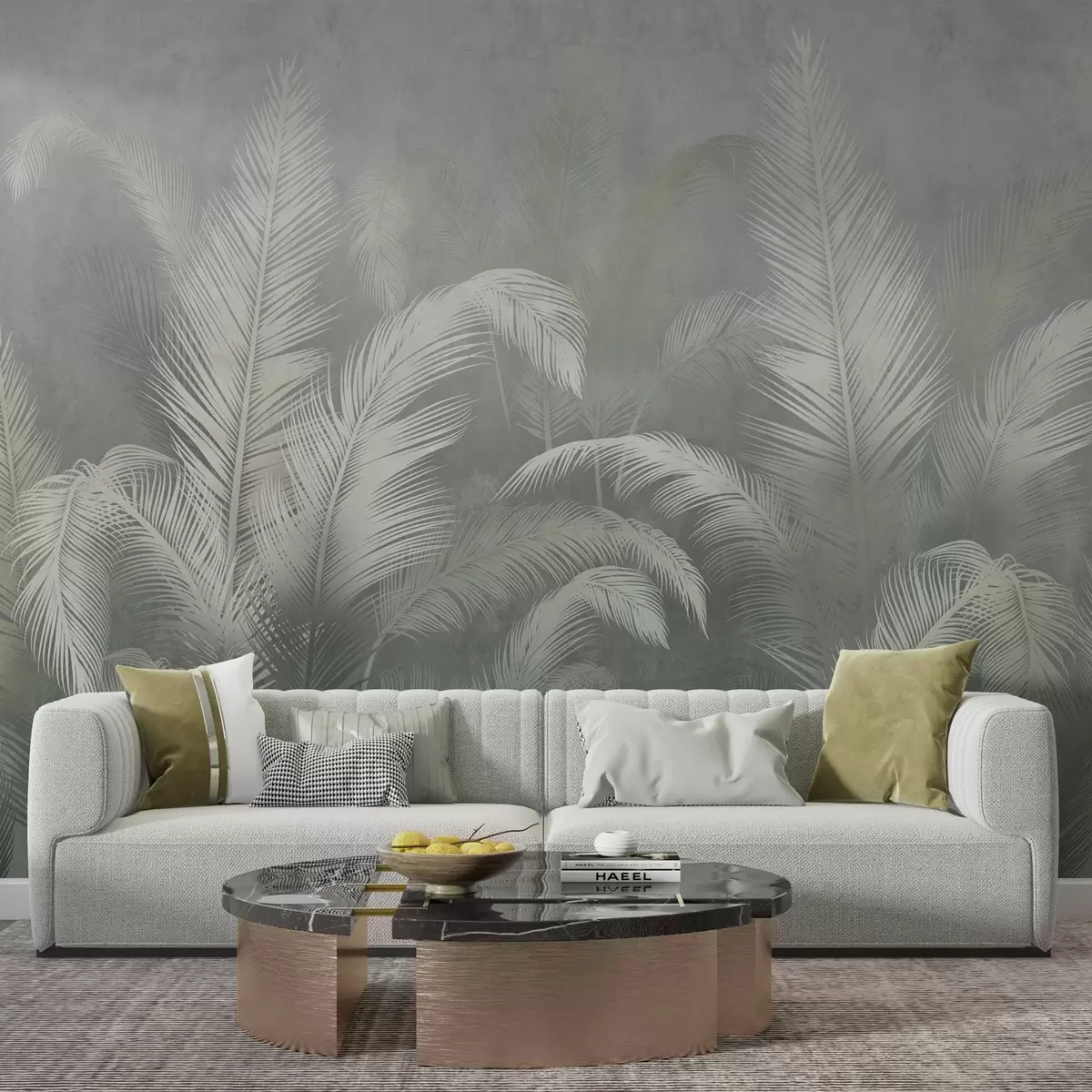 Fotomurales Hojas de palmera tropical en estilo grunge en color verde Nr. w03250v2