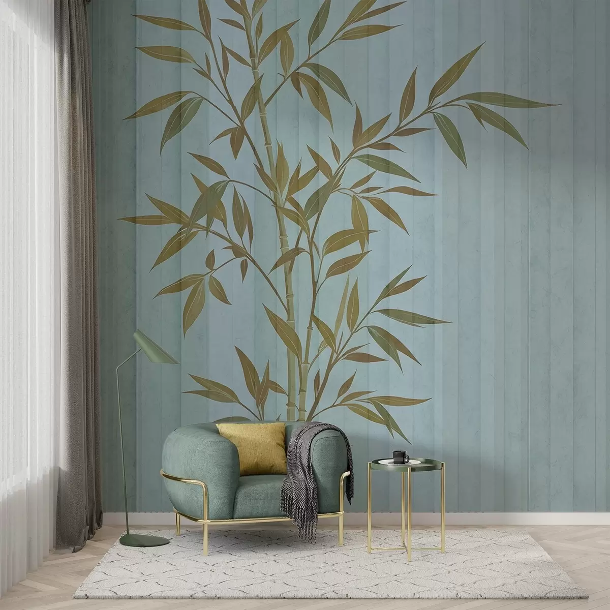Fotomurales Bambú pintado sobre fondo grunge Nr. w03337v2