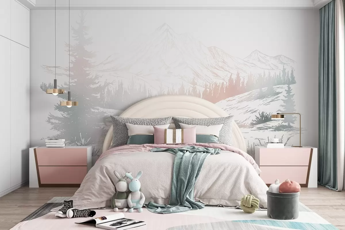 Fotomurales Paisaje de montaña con pinos, bosque, naturaleza, colorido Nr. w03344v4