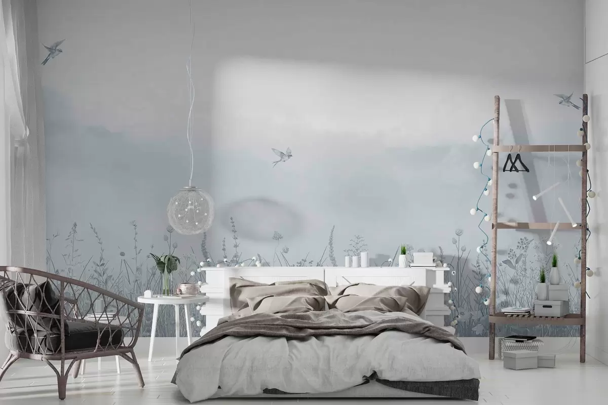 Fotomurales Flores silvestres y cielo brumoso en tonos azules Nr. w03391v1