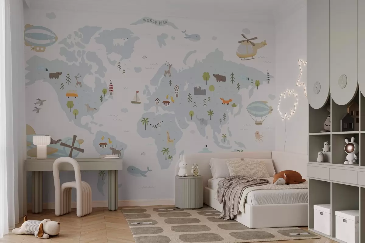 Fotomurales Mapamundi infantil con animales y aviones Nr. w03392