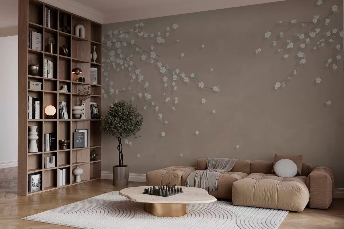 Fotomurales Rama floreciente en el fondo de la pared del grunge Nr. w03393