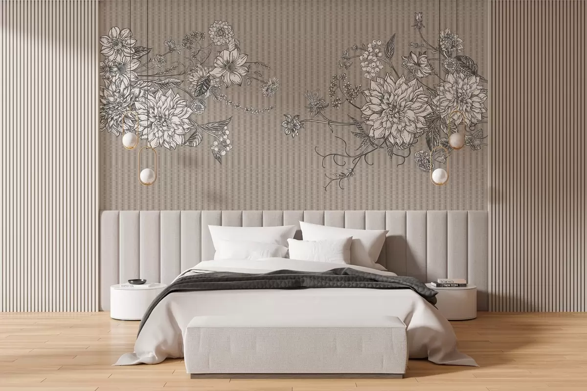 Fotomurales Flores gráficas sobre fondo mate en tonos beige Nr. w03395