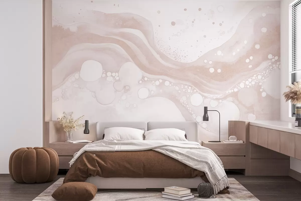 Fotomurales Dibujo de abstracción estilo acuarela, arte fluido, color beige Nr. w03403