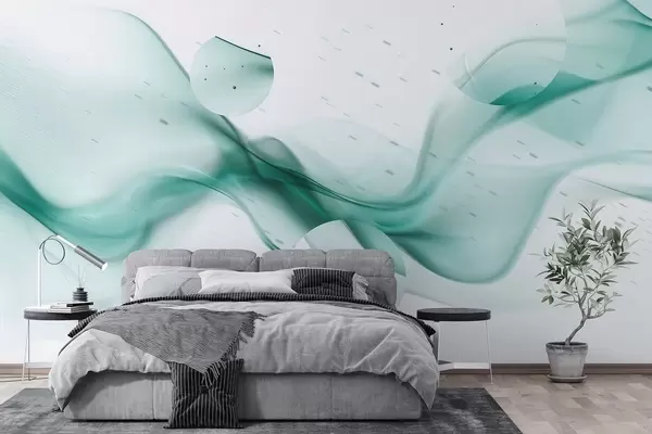 Fotomurales Abstracción de ondas geométricas, estilo borroso, degradado, colores aguamarina Nr. w03404v2