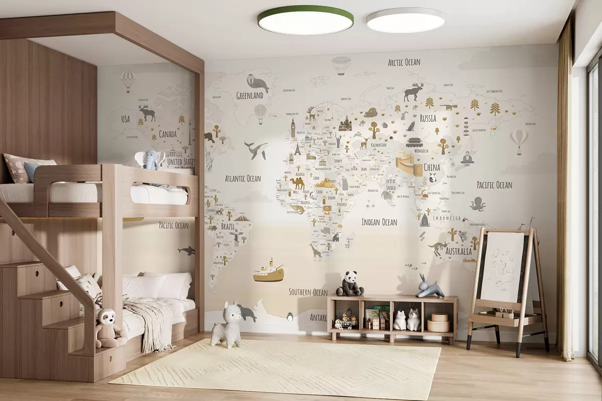 Fotomurales Mapamundi con animales y puntos de referencia Nr. w03410v1