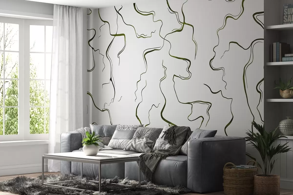 Fotomurales Líneas geométricas, estilo tinta, abstracción, colores verdes Nr. w03436