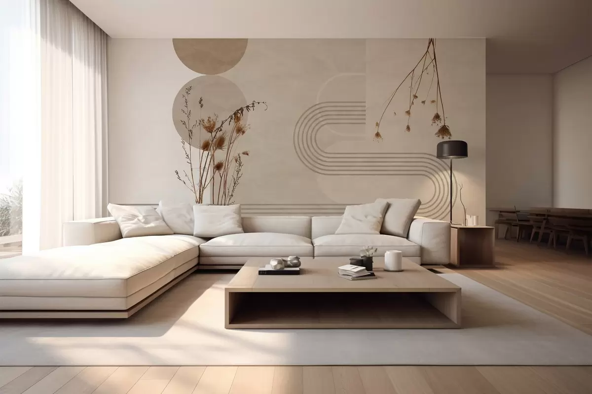 Fotomurales geometría elegante y flores secas en tonos beige Nr. w03449