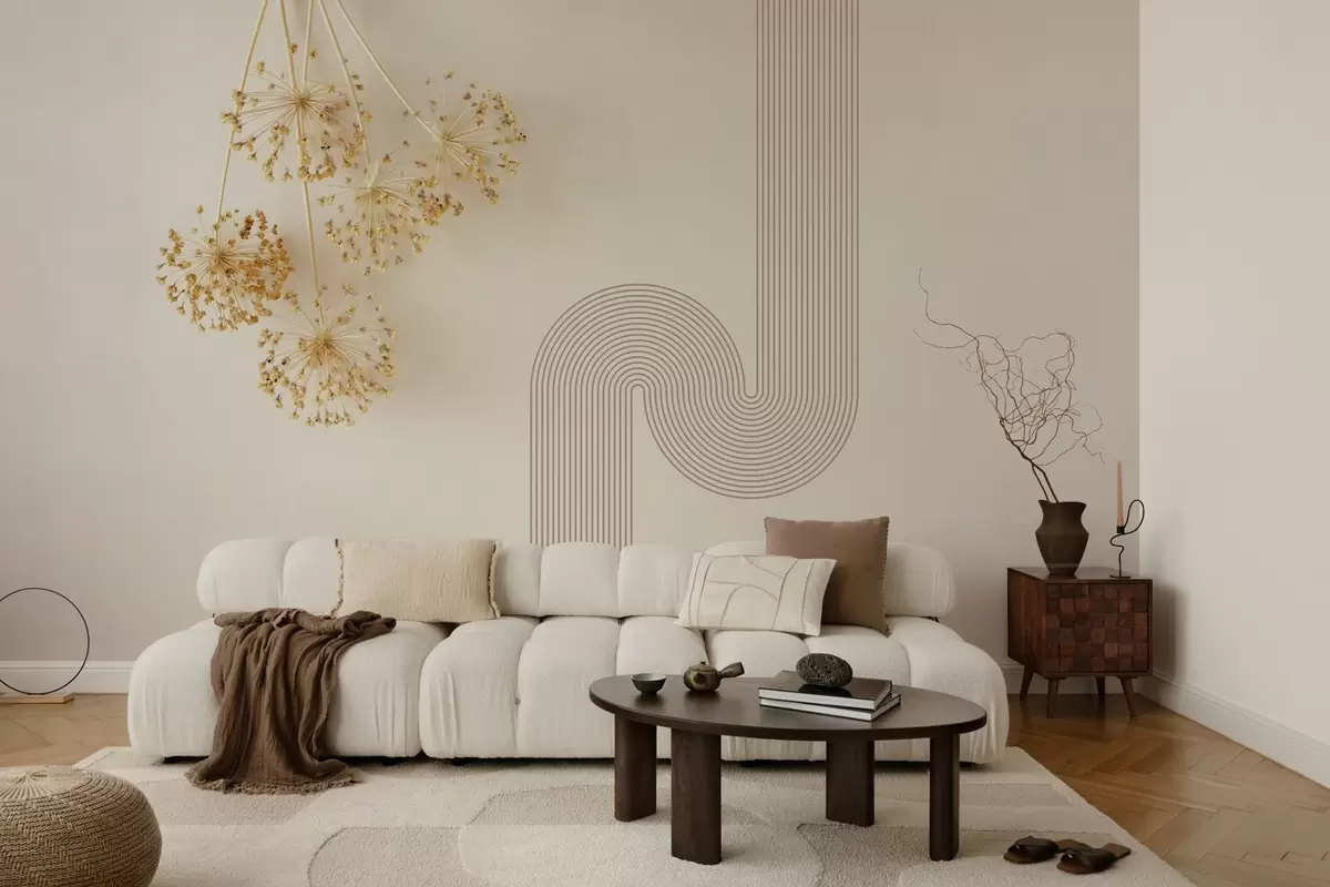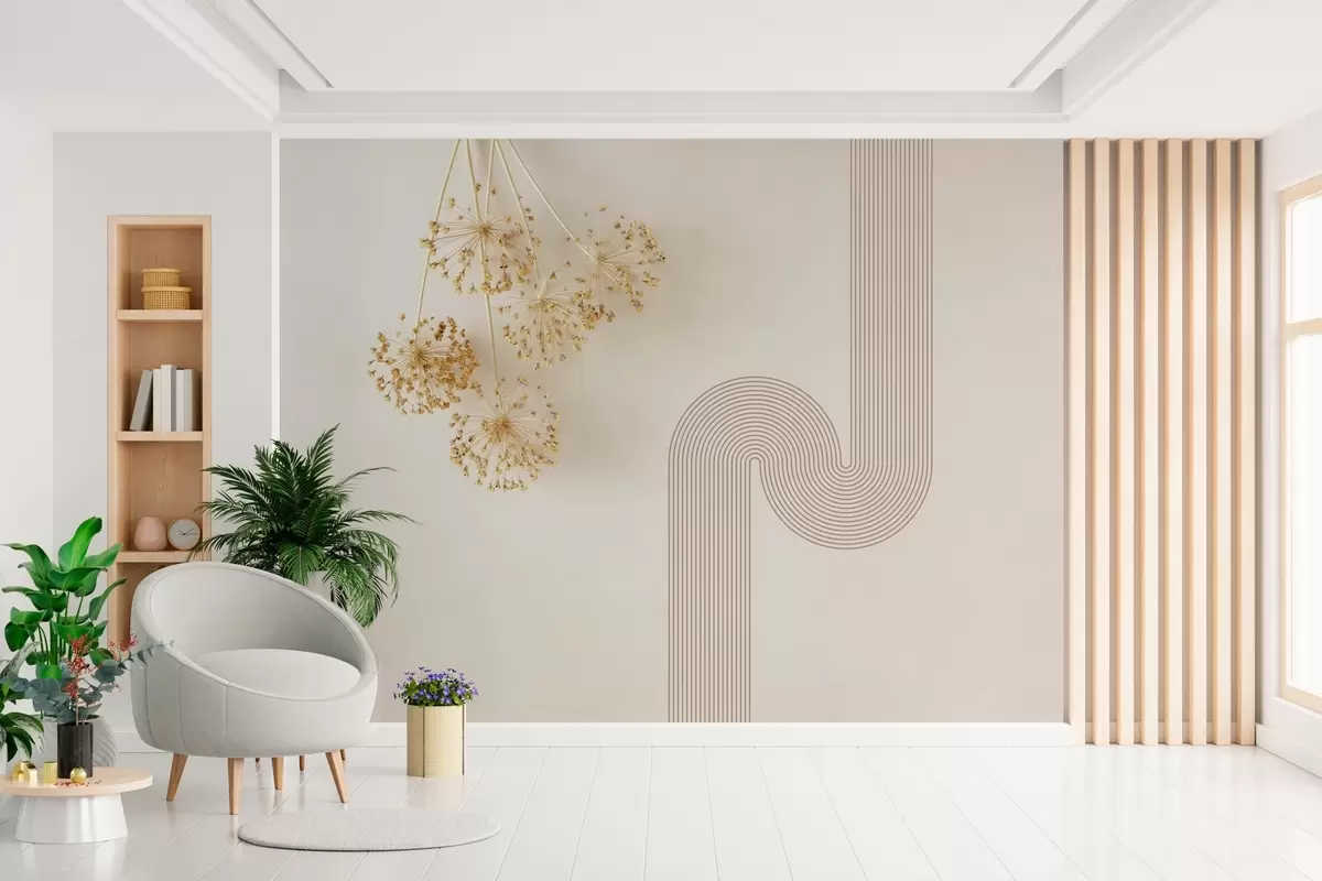 Fotomurales elegantes flores secas y líneas en tonos beige Nr. w03455