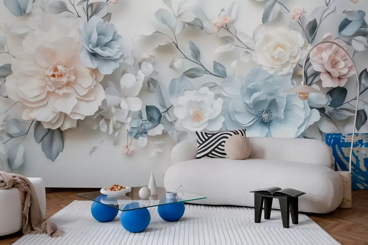 Fotomurales delicadas flores aéreas con efecto de volumen al estilo de la pintura al óleo Nr. w03457