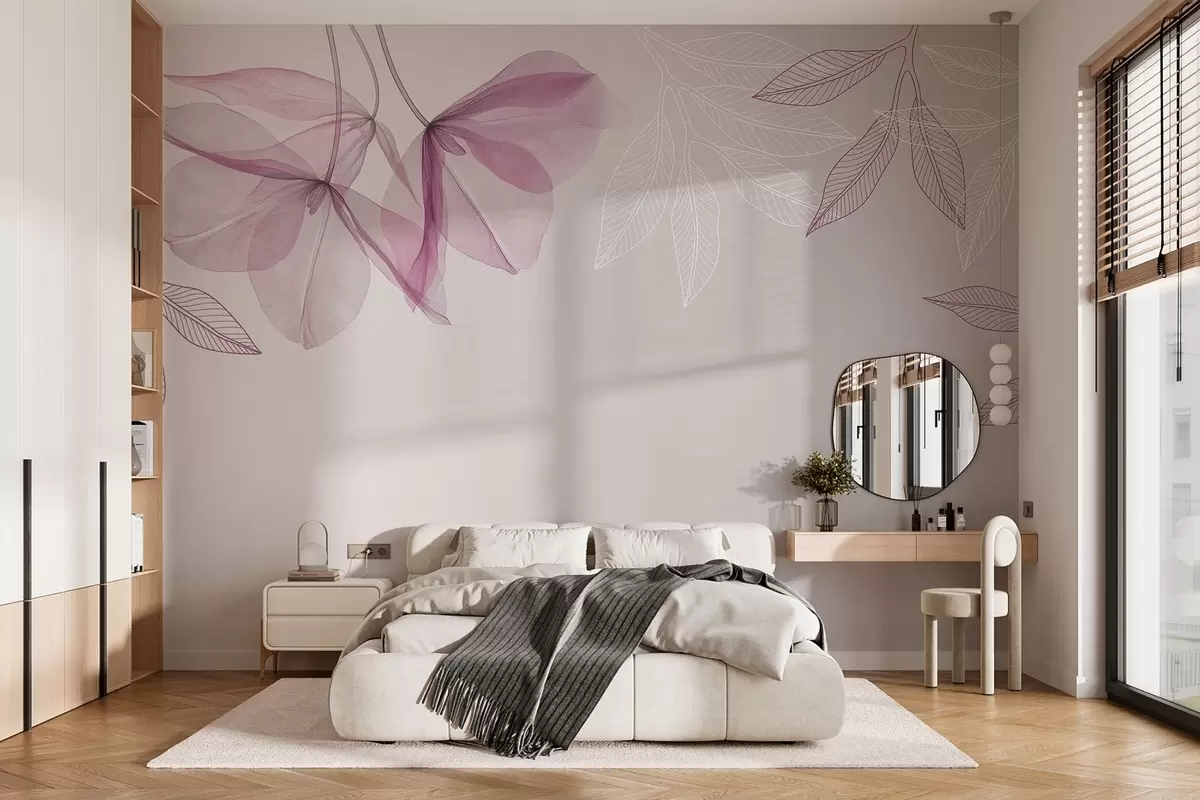 Fotomurales delicadas flores y hojas translúcidas en tonos morados Nr. w03616v4