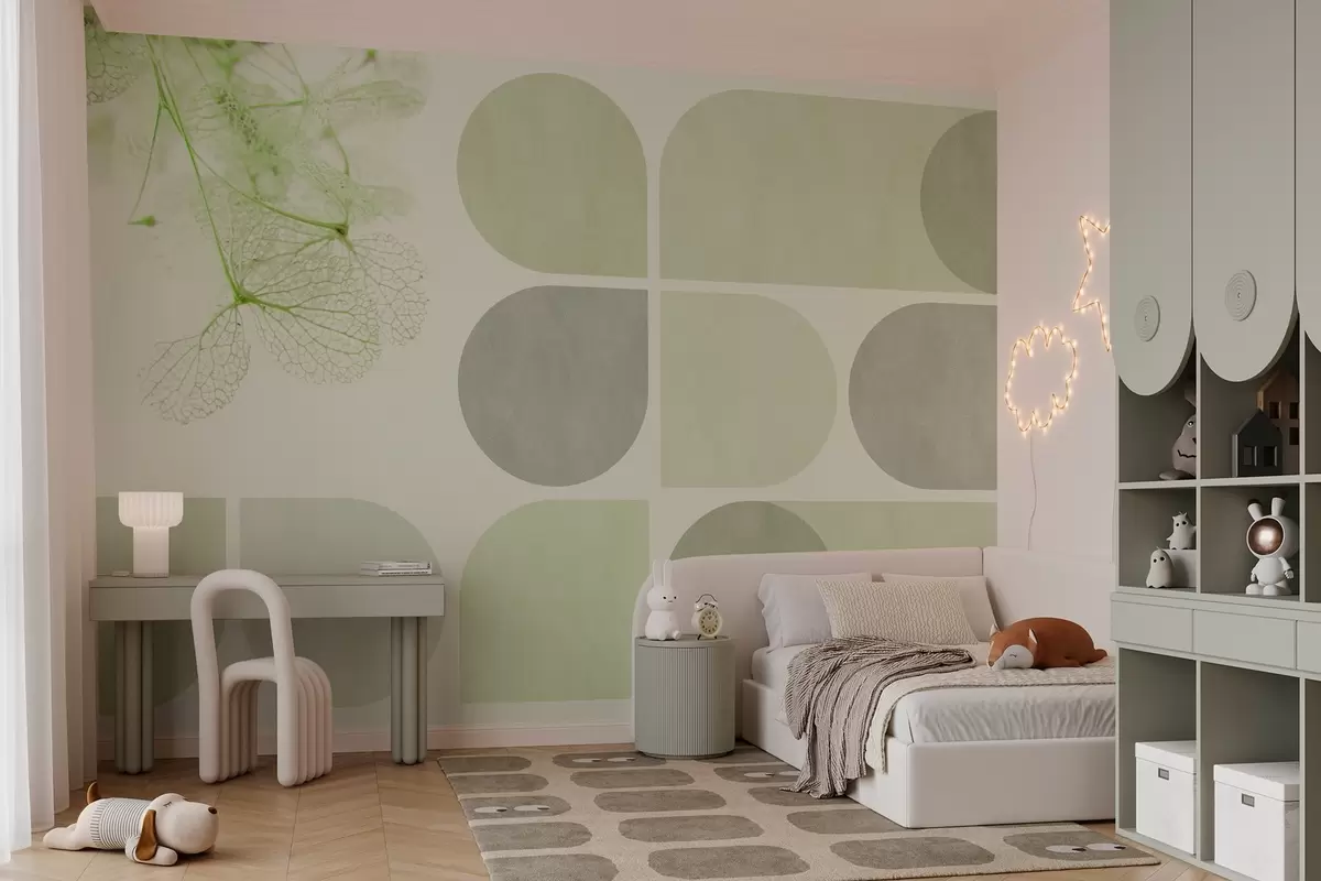 Fotomurales geometría y flores secas con venas en tonos verdes Nr. w03617v1