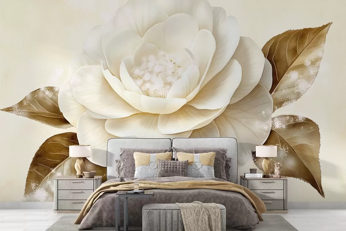 Fotomurales Preciosa flor de peonía en tonos beige Nr. w03757