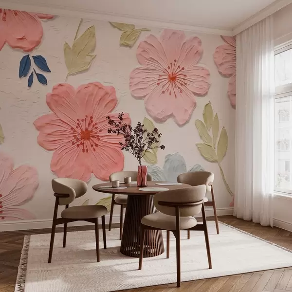 Fotomurales Flores en relieve en estilo bajorrelieve con tonos rosados Nr. w03797