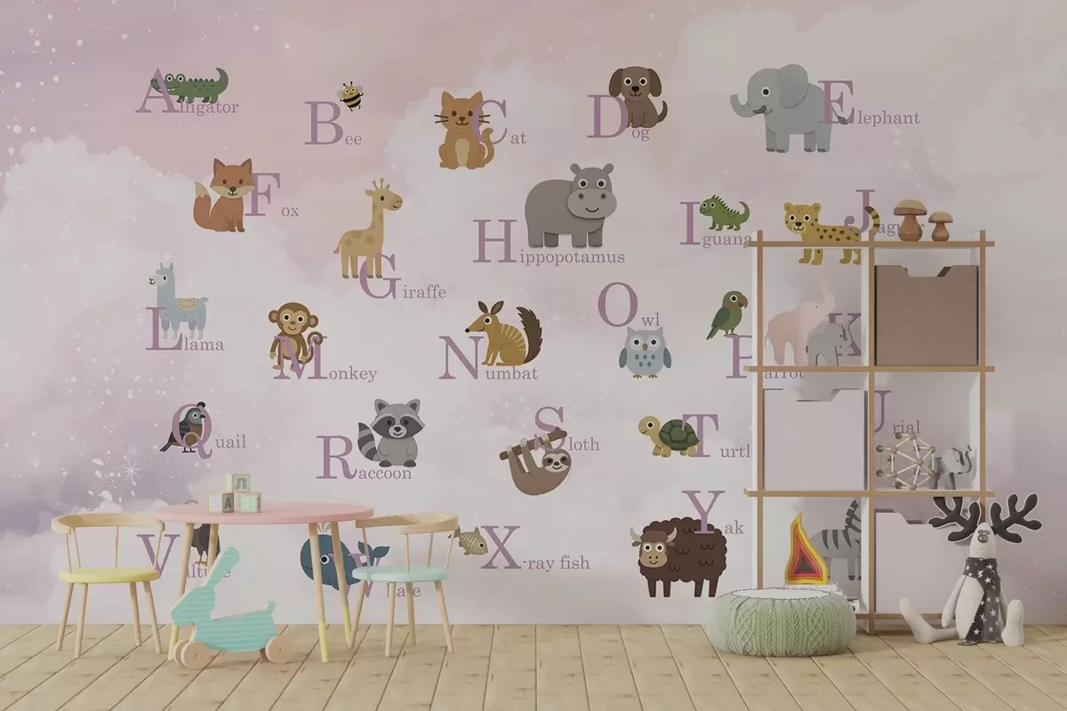 Fotomurales Alfabeto con letras rosas sobre fondo de cielo Nr. w03810