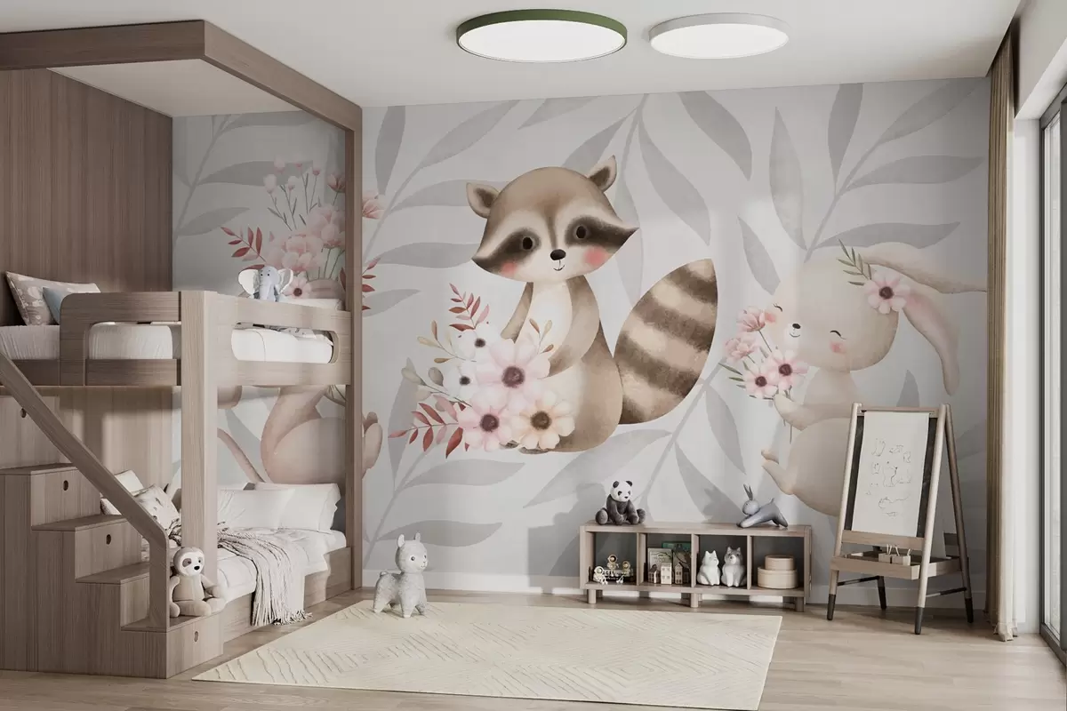 Fotomurales Animales del bosque con flores Nr. w03861