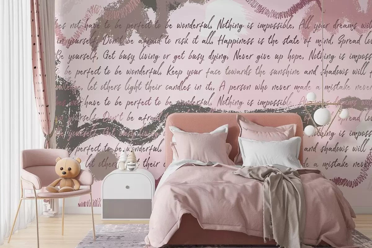 Fotomurales Diseño con citas inspiradoras, abstracción, colores rosas Nr. w03909v3