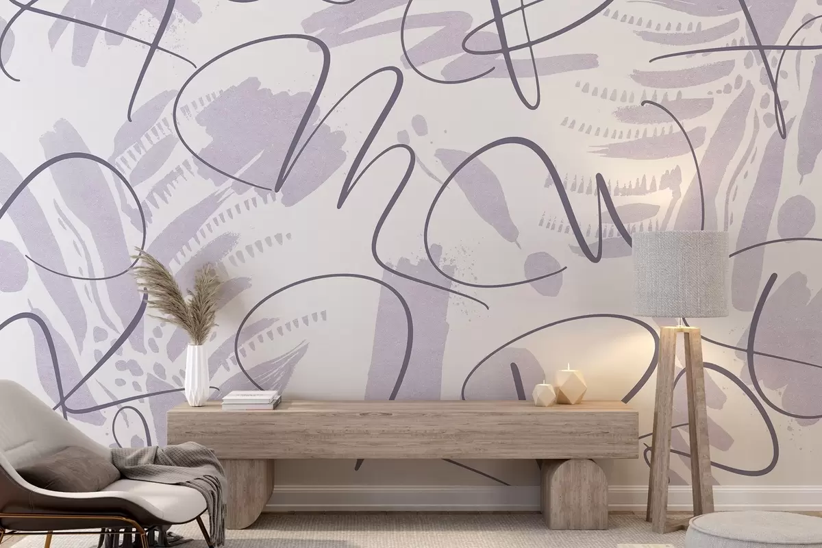 Fotomurales Abstracción caligráfica con letras, pinceladas, color púrpura Nr. w03913v2