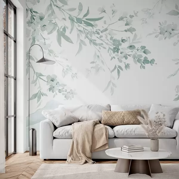 Fotomurales Ramas floridas, imitación de acuarela, tonos verdes Nr. w03935v3
