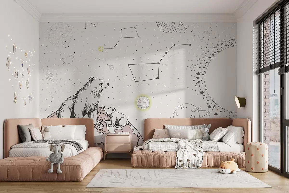 Fotomurales Osos y estrellas sobre fondo marrón, tema de astronomía Nr. w04002v2
