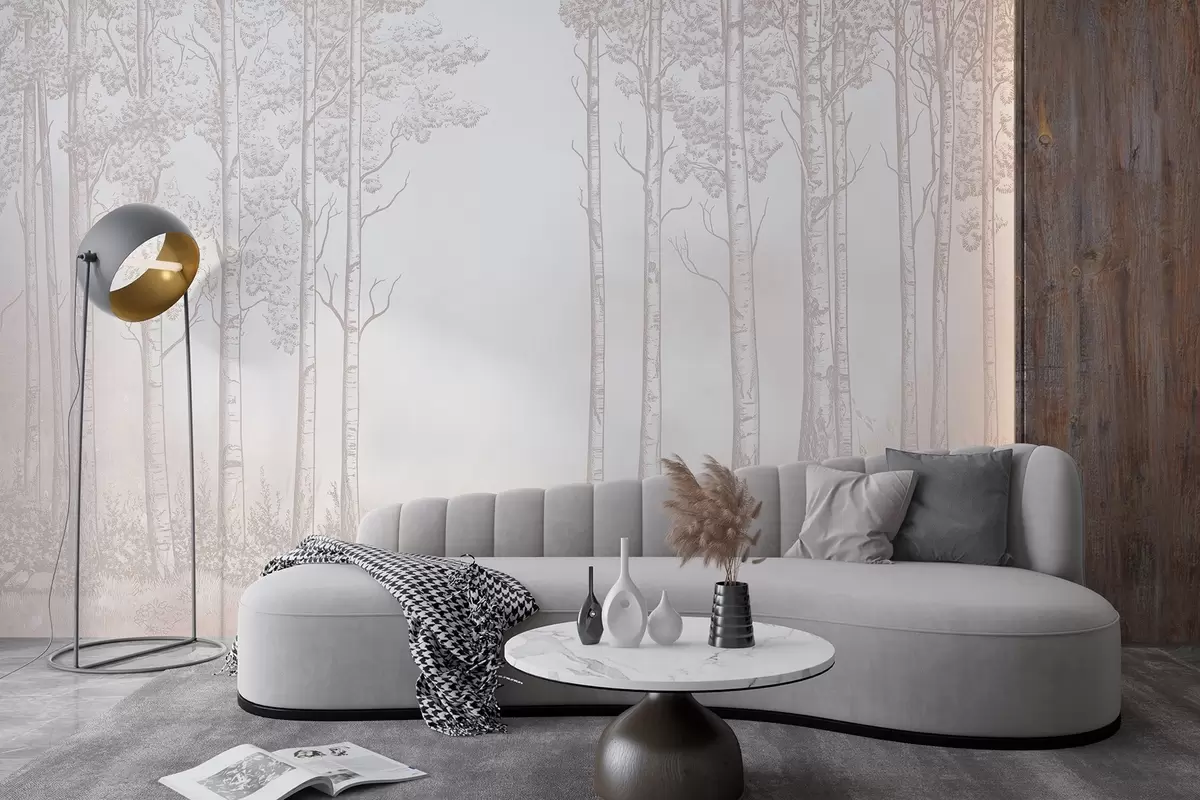 Fotomurales Bosque con abedules, minimalismo, naturaleza, paleta de colores beige Nr. w04009v3