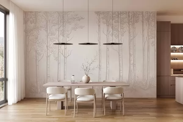 Fotomurales Bosque con abedules, minimalismo, naturaleza, paleta de colores beige Nr. w04009v3