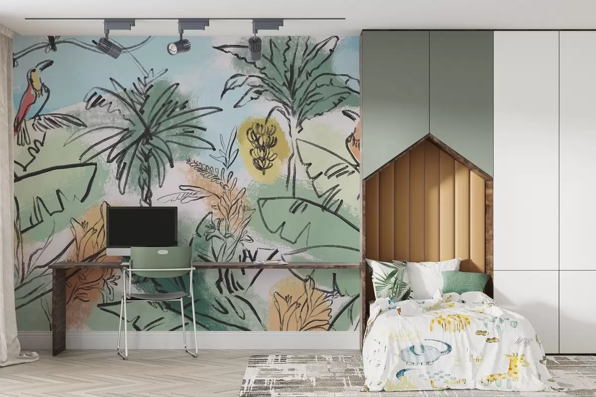 Se puede limpiar suavemente con una esponja suave. Los murales de pared con recubrimiento de barniz pueden limpiarse con agua.