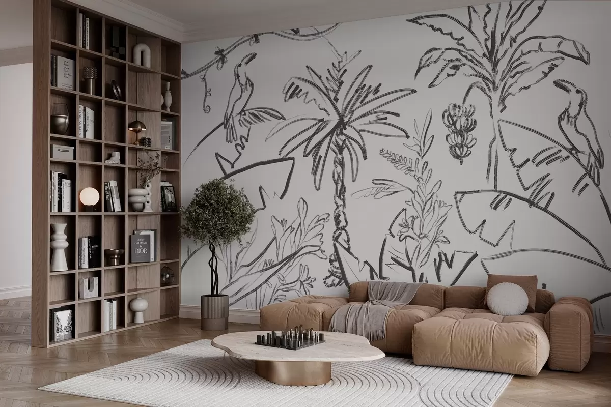 Fotomurales Dibujo lineal tropical, plátanos, palmeras, gráficos de contorno Nr. w04020