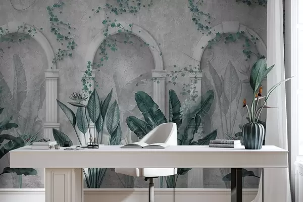 Fotomurales Muro de hormigón con arcos y plantas tropicales, florales, colores azules Nr. w04065v2
