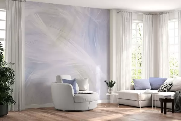 Fotomurales plumas vaporosas en tonos beige y azul Nr. w04071v1