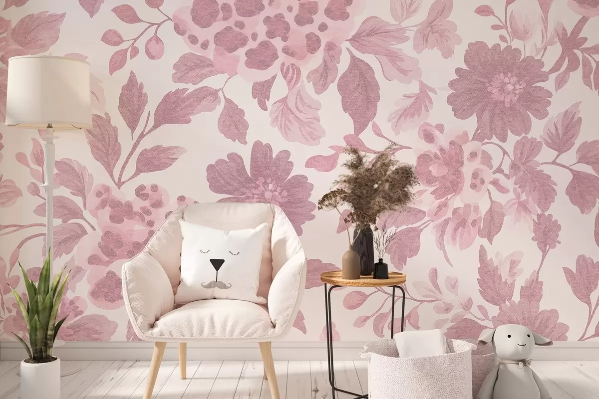 Fotomurales Flores estilo boho con estampado de leopardo, color rosa Nr. w04114v3