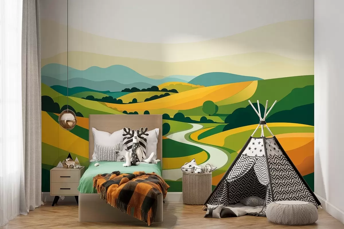 Fotomurales Paisaje abstracto con colinas y árboles, colores vivos Nr. w04116