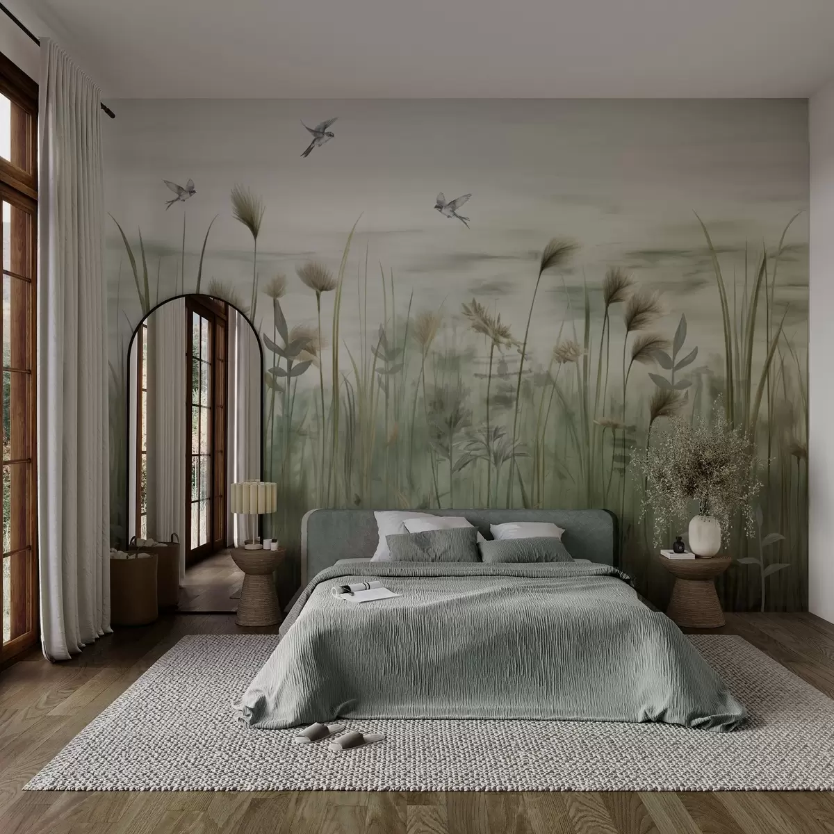 Fotomurales Versión ligera de paisaje de hierba con golondrinas Nr. w04258
