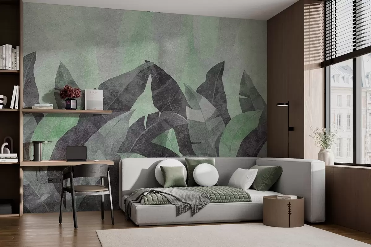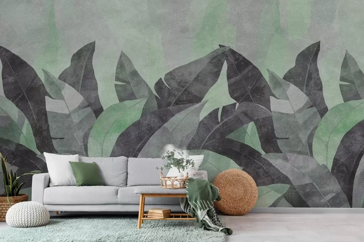 Fotomurales hojas de plátano texturizadas en tonos verdes y grises Nr. w04285v1