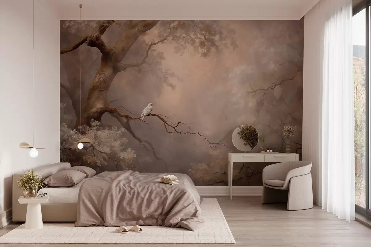 Fotomurales bosque místico con un pájaro blanco Nr. w04314