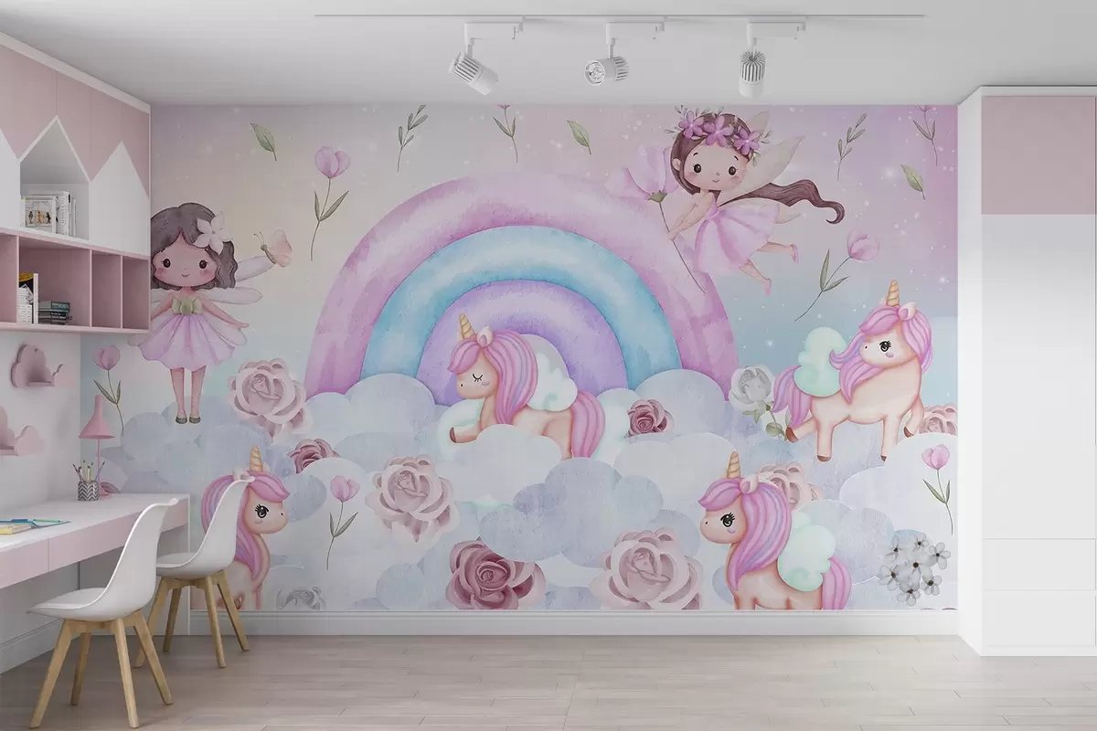 Fotomurales Hadas y unicornios entre nubes y arco iris Nr. w04371