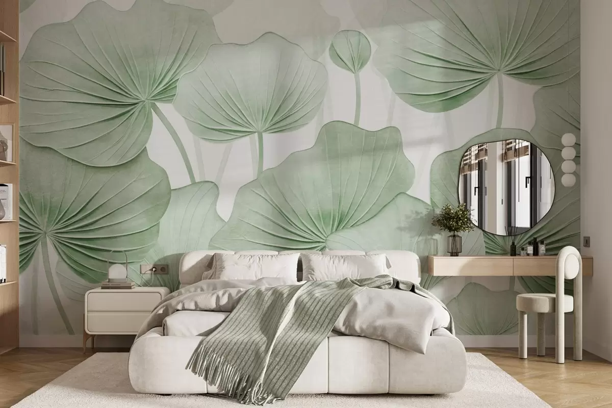 Fotomurales Hojas de loto con imitación de textura envejecida Nr. w04412