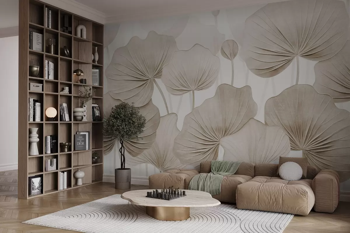 Fotomurales Hojas de loto con imitación de textura envejecida Nr. w04412v1