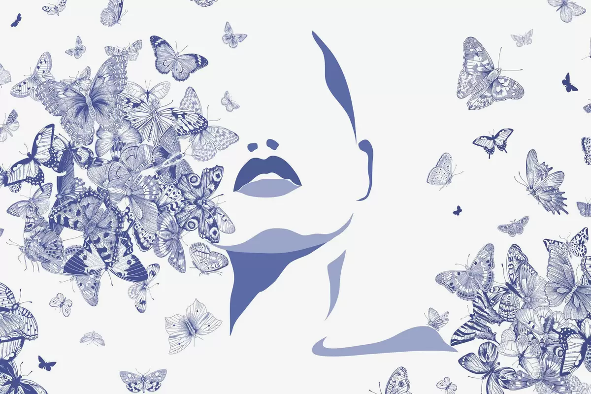 Fotomurales Silueta de un rostro entre mariposas Nr. w04778v1