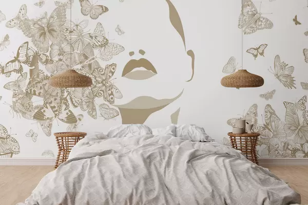 Fotomurales Silueta de un rostro entre mariposas Nr. w04778v2