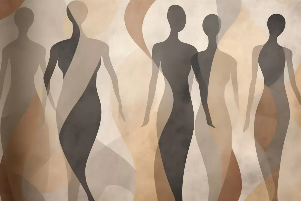 Fotomurales Siluetas y suaves ondas en cálidos tonos beige grisáceos. Nr. w04787