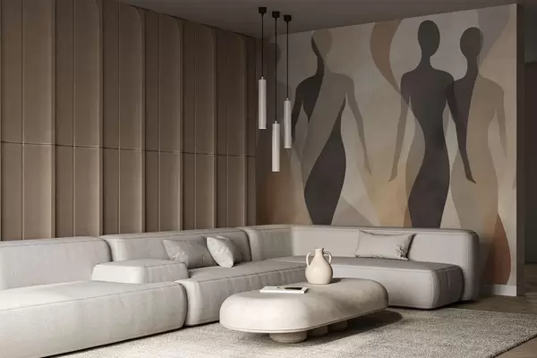 Fotomurales Siluetas y suaves ondas en cálidos tonos beige grisáceos. Nr. w04787