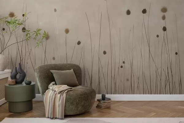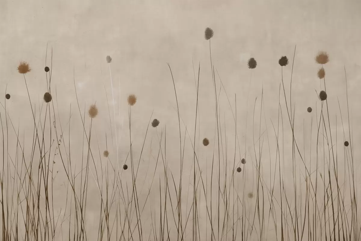 Fotomurales Hierbas finas y cabezas de semillas esponjosas sobre un fondo beige cálido. Nr. w04793