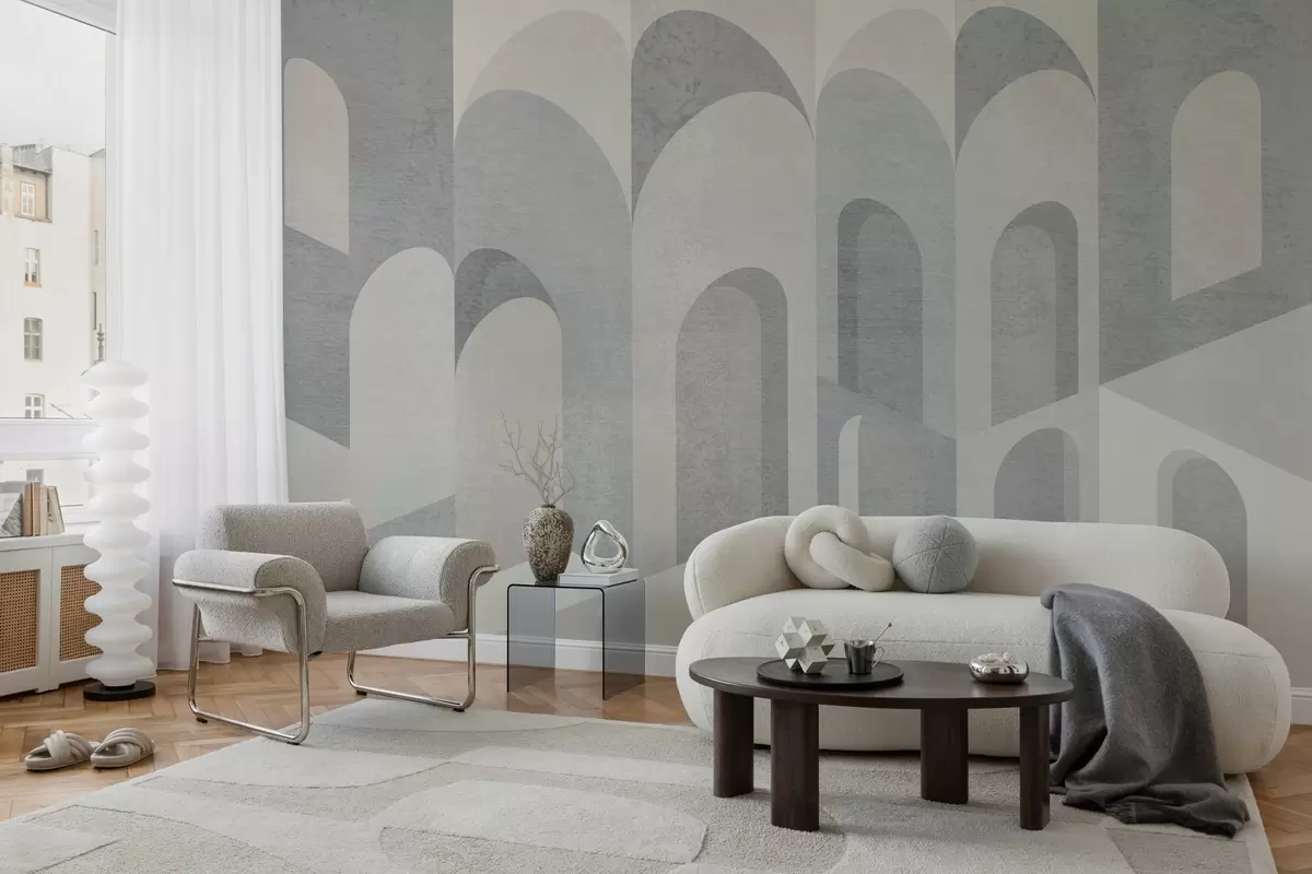 Fotomurales metamorfosis urbanas del arco en tonos grises y beige frío Nr. w04812v1