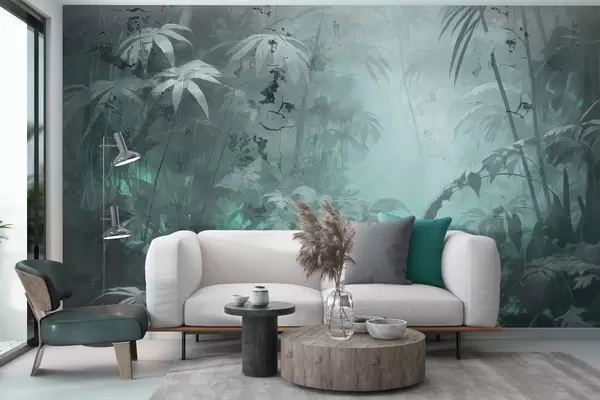 Fotomurales Selva pintada detrás de un muro de hormigón grunge Nr. w04833v1