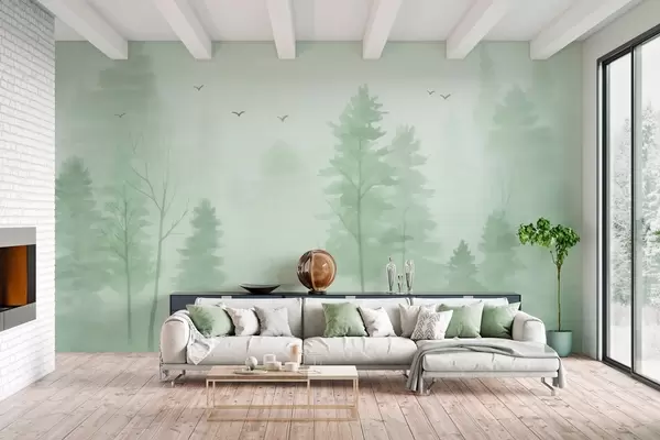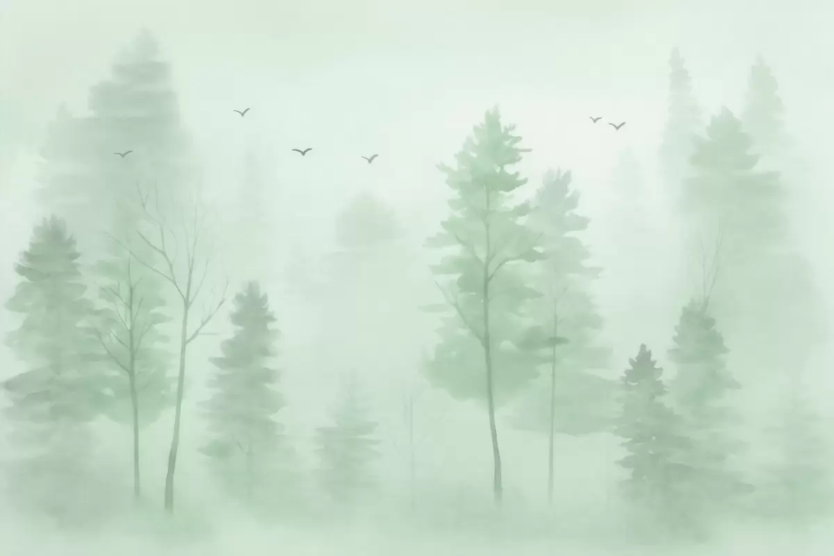 Fotomurales Bosque aéreo en tonos verdes, estilo acuarela. Nr. w04872v1